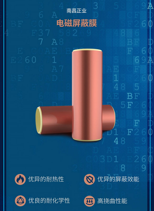 南昌正業(yè)研發(fā)、生產(chǎn)的電磁屏蔽膜為FPC的電磁屏蔽提供了解決方案,通過導電膠層與FPC的接地金面導通,起到屏蔽外界電磁干擾的作用,是FPC不可或缺的重要材料。