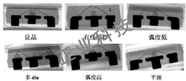 有線脫焊、塌線、跪線、弧度低、斷頸、平頸、多die、弧度高、多余線、重復(fù)焊線、無線脫焊、頸部受損、膠水厚、線尾長、球厚/球大/球畸形等。