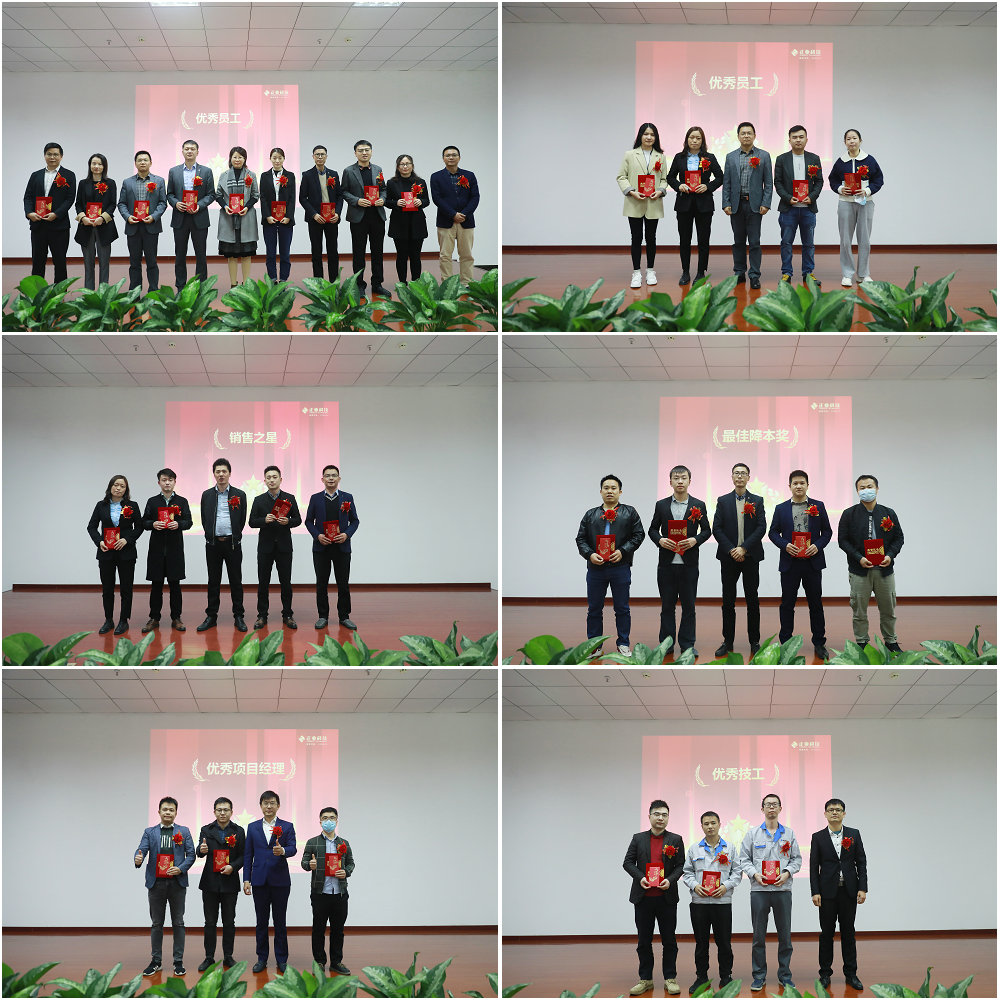 會議現(xiàn)場公布了“優(yōu)秀員工”獎、“銷售之星”獎、“最佳降本”獎、“優(yōu)秀項目經(jīng)理”獎、“優(yōu)秀技工”獎、“優(yōu)秀科技工作者”獎、“最佳質(zhì)量”獎、“優(yōu)秀部門”獎、“優(yōu)秀總經(jīng)理”獎的獲獎名單,這些杰出的部門和個人,為公司長遠發(fā)展做出突出貢獻,在全場熱烈的掌聲中被授予殊榮。